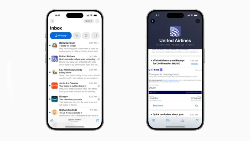 هوش مصنوعی روی اپلیکیشن Mail هم فعال است و میتواند جواب ایمیلهای شما را هوشمندانه بدهد. در این برنامه، قابلیت دستهبندی ایمیلها را داریم که امکان سازماندهی ایمیلهای دریافتی برای ایمیلهای شخصی، تراکنشها، اخبار، اعلانات شبکه های اجتماعی و ایمیلی های تبلیغاتی را فراهم میکند. این تغییرات، ظاهر مرتبتر، دسترسی سریعتر و بهتر رو برای کاربران فراهم می کند.