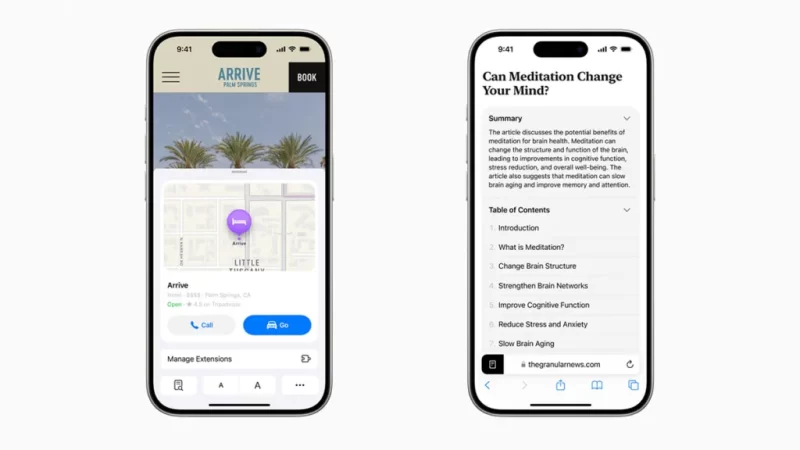 مرورگر سافاری تجربه بهتری را در اختیار کاربران با استفاده از قابلیت های هوش مصنوعی در iOS 18 قرار میدهد. این مرورگر با استفاده از الگوریتم یادگیری ماشین، میتواند صفحات وب رو بخواند و خلاصه ای از مقاله هر وب سایت را به کاربران نمایش دهد. همچنین، امکان مشاهده سریع رستوران، هتل یا مکان های دیدنی را فراهم می کند.